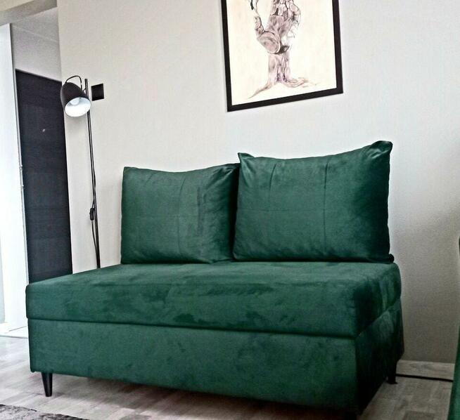 Dizajnerska duża pufa(mini sofa )w pięknym odcieniu naturalnej zieleni. Materiał solidny, welurowy bardzo miły w dotyku. ...