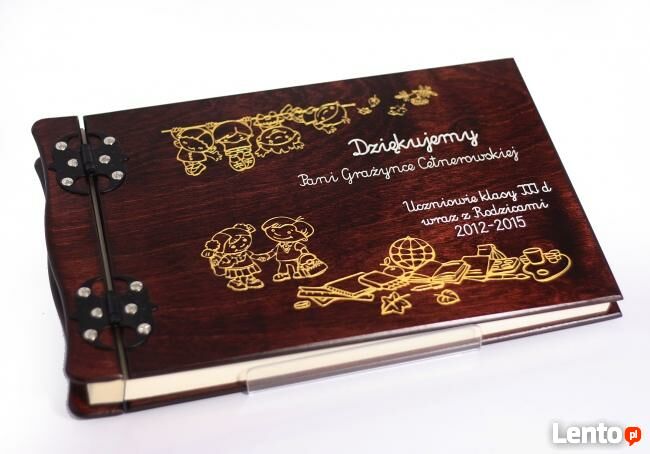 Firma ART-KEY proponuje oryginalny album na zdjęcia w drewnianej oprawie,z indywidualnym złoconym grawerem laserowym. Super pamiątka na długie lata,