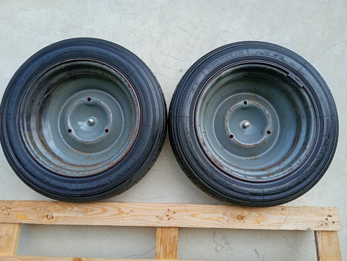 Citroena OE 2CVOpony Michelin z felgami 2X (org. farba)Opony Michelin z felgami 2X (org. farba) do Citroena OE 2CV 4x15 cala Cena 750 zł