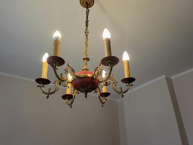 Sprzedam piękny mosiężny sześcioramienny żyrandol. Wymiary: Średnica - 56cm Wysokość - 75cm ( możliwość ...