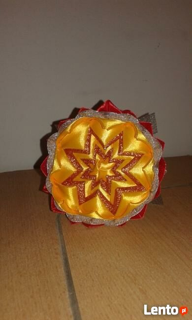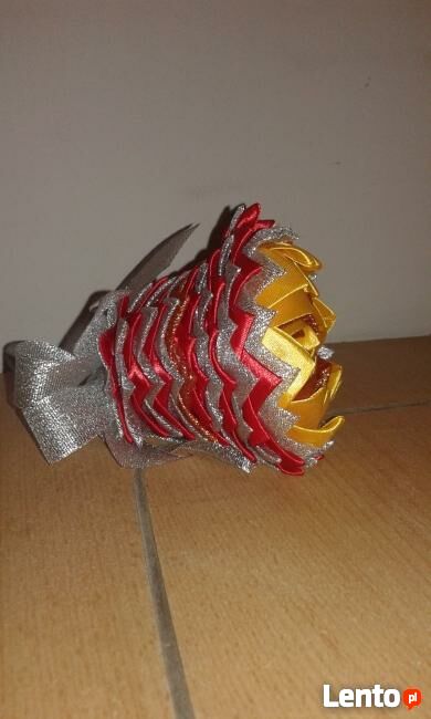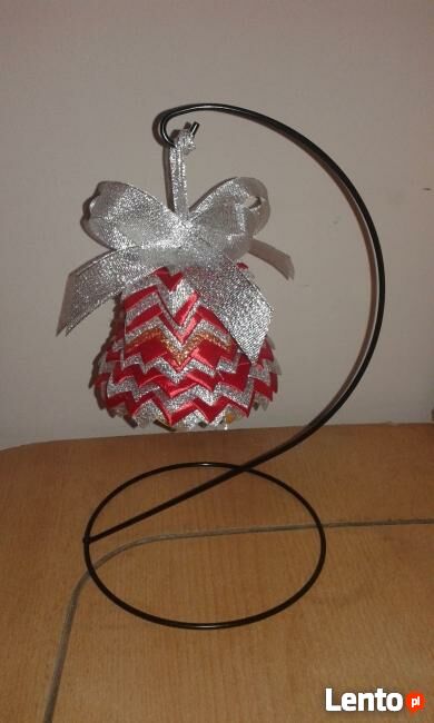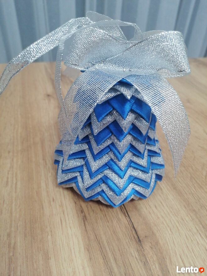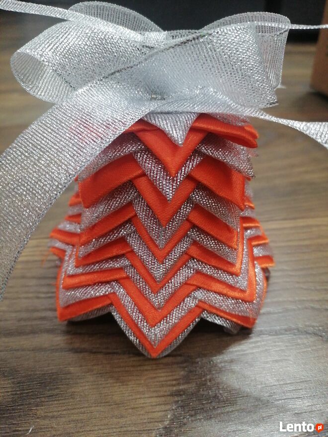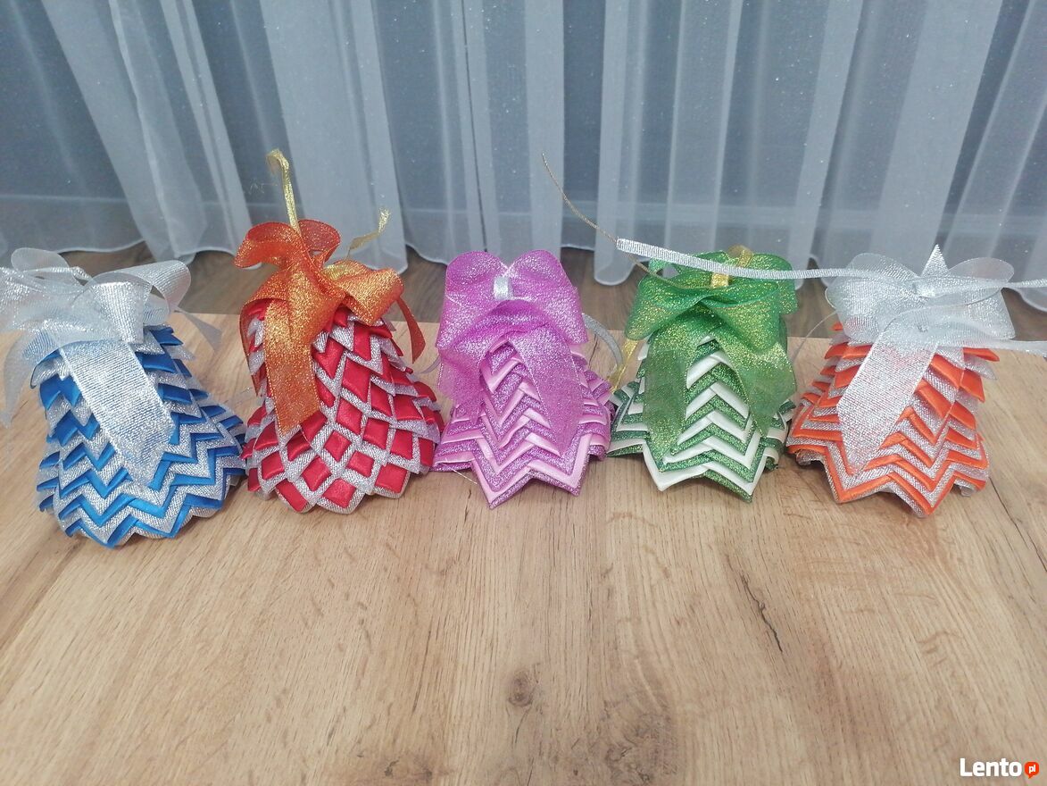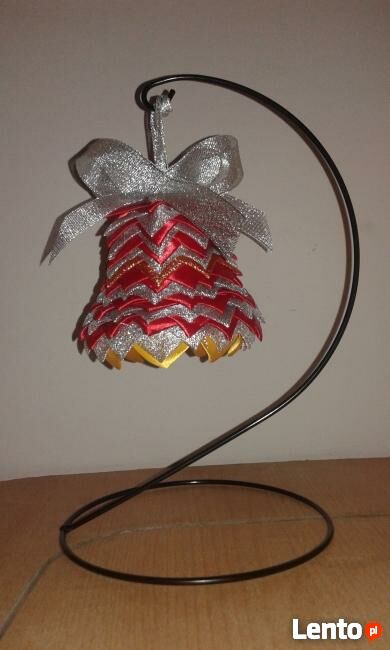 Witam,Sprzedam dzwoneczek wykonany metodą karczoch, ze wstążek satynowych, a także brokatowych.Wysokość to 14 cm.