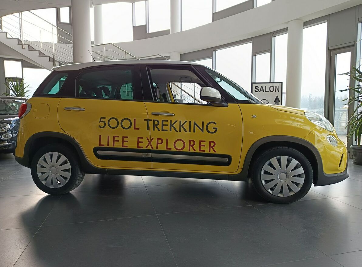 Oferujemy bardzo zadbany egzemplarz Fiata 500L w wersji Trekking z 2014r., napędzany niezawodnym silnikiem benzynowym 1.4 95KM. Samochód z naszego salonu, na bieżąco obsługiwany w naszym ASO, bezwypadkowy z udokumentowanym przebiegiem. Auto bardzo ładnie się prezentuje, w bardzo dobrym stanie technicznym, aktualnie po serwisie olejowym.Więcej informacji pod nr. 604 - pokaż numer telefonu - - sprzedaż z fakturą VAT23%