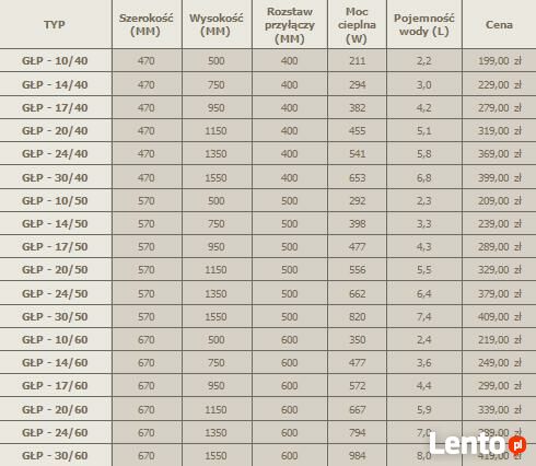 - Ceny i rozmiary grzejników z katalogu dotyczą koloru BIAŁEGO.
