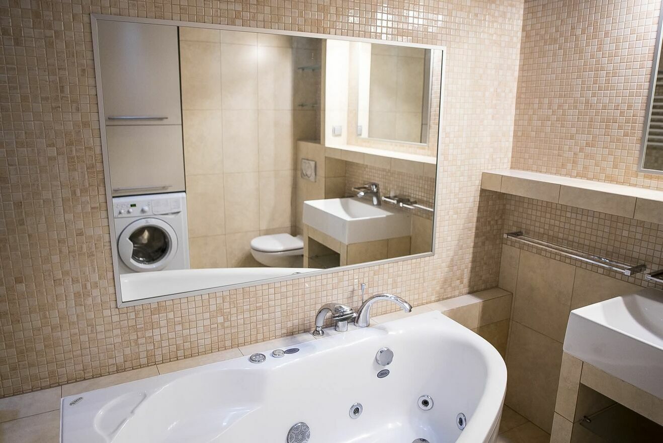 łazienka: wanna z hydromasażem oraz pralka
