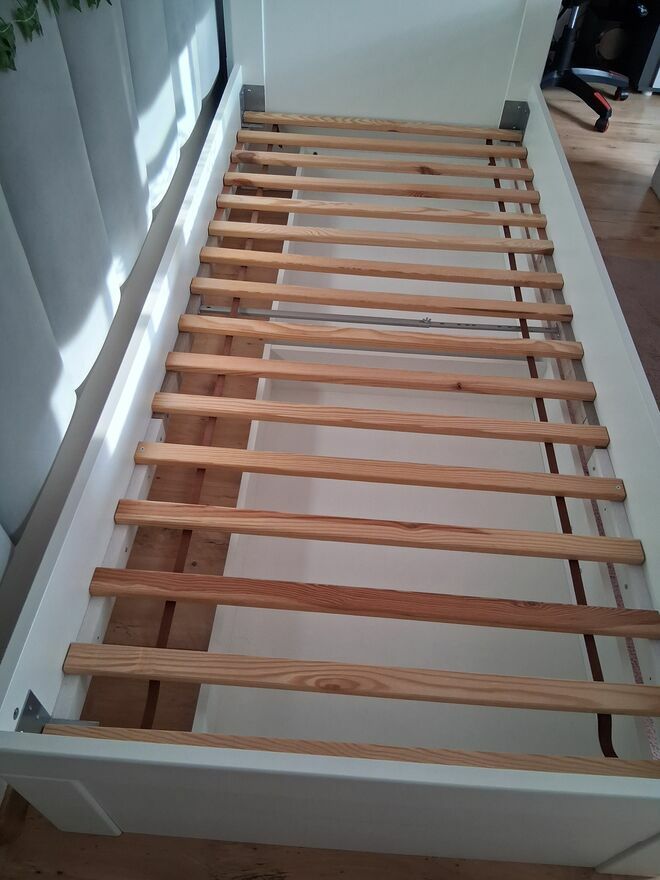 Łóżko z materacem 90/200Stan łóżka bardzo dobry normalne ślady użytkowania widoczne na zdjęciach.