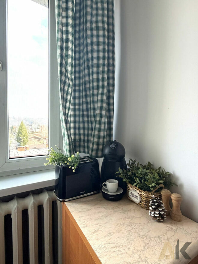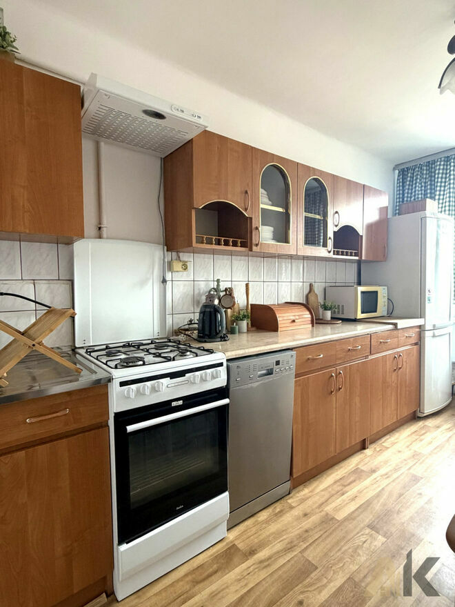 Mieszkanie umeblowane i wyposażone w sprzęty AGD (lodówka, zmywarka, pralka, piekarnik).