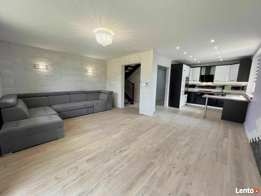 Nowy dom 132 m² z garażem • Działka 600 m² • Gotowy do zamieszkania • LimanowaNa sprzedaż nowoczesny, nigdy niezamieszkały dom jednorodzinny o powierzchni użytkowej 132 m², położony na płaskiej działce o pow. 600 m². Budynek z garażem w bryle, wykończony i gotowy do wprowadzenia się – wszystkie sprzęty AGD nowe i nieużywane.