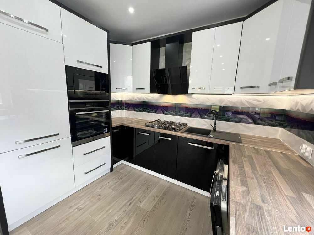 - W pełni wyposażona kuchnia – lodówka, mikrofalówka, piekarnik parowy, zmywarka i inne sprzęty AGD – wszystko nowe, nigdy nieużywane.