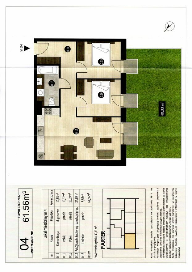 OSTATNIE MIESZKANIE Z OGRODEM 1 AR!!!!!!M4- 61,56M2= 465 000 ZŁ 1 M2 7500 ZŁ BRUTTO!