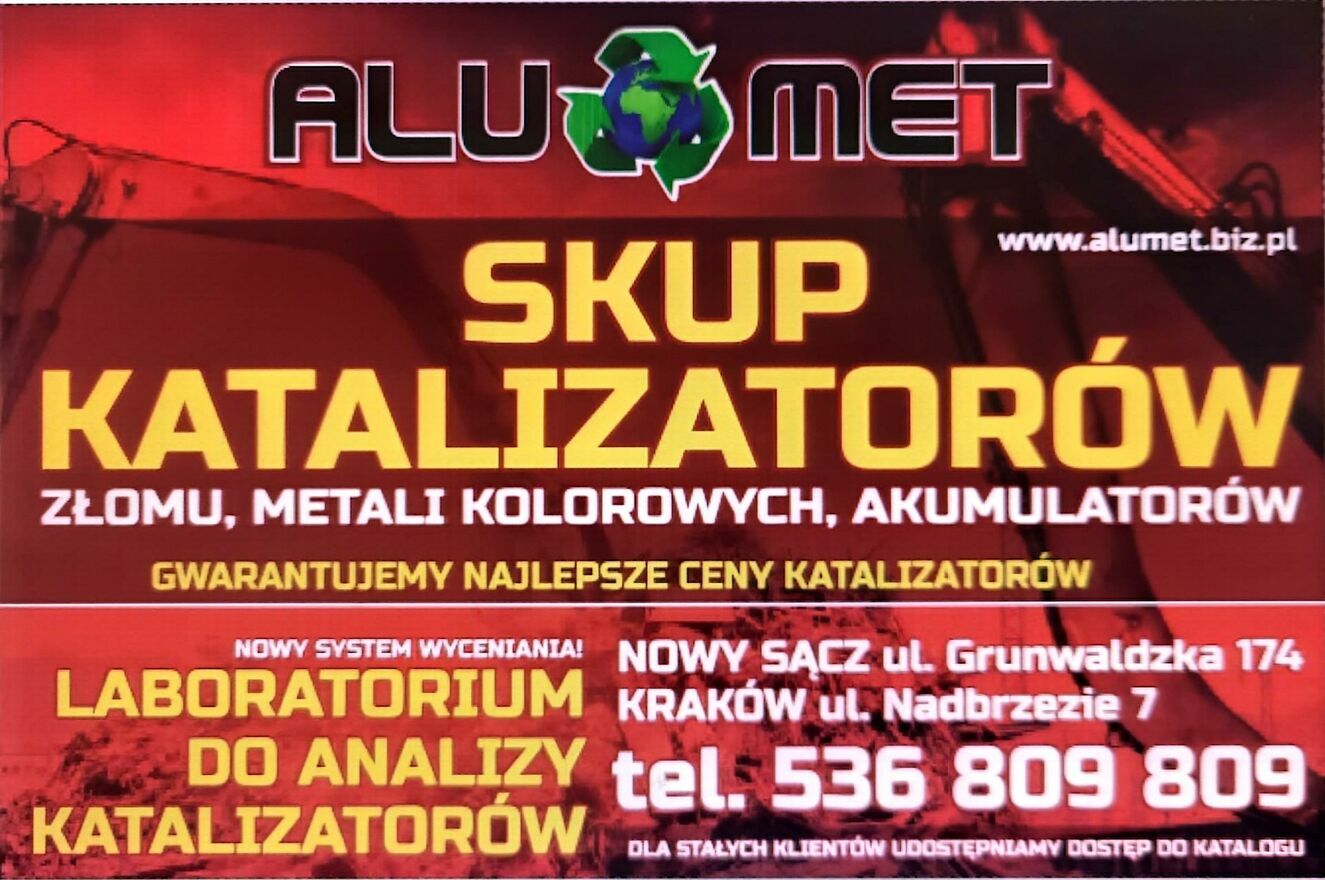 Kupię katalizatory filtry DPF monolit wykruszone wkłady możliwy dojazd do klienta po wcześniejszym uzgodnieniuNowy Sącz ul.grunwaldzka 174 teren dawnej cegielni bielowice oferujemy najlepsze ceny oraz analizę na miejscu