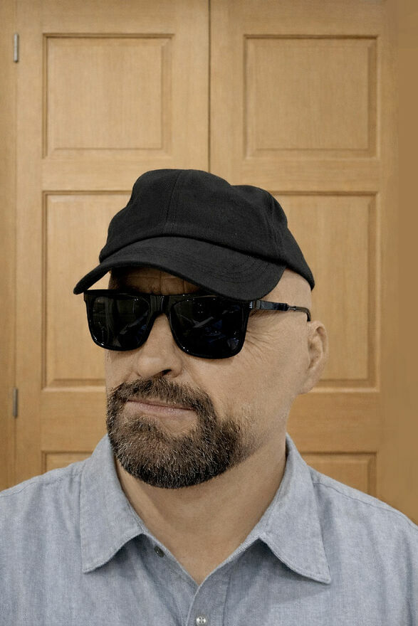 Męska realistyczna maska siliko-lateksowa do charakteryzacji albo efektów specjalnych.Rozmiar XXL.Okulary,czapka i peruka to przedmioty użyte tylko do prezentacji.
