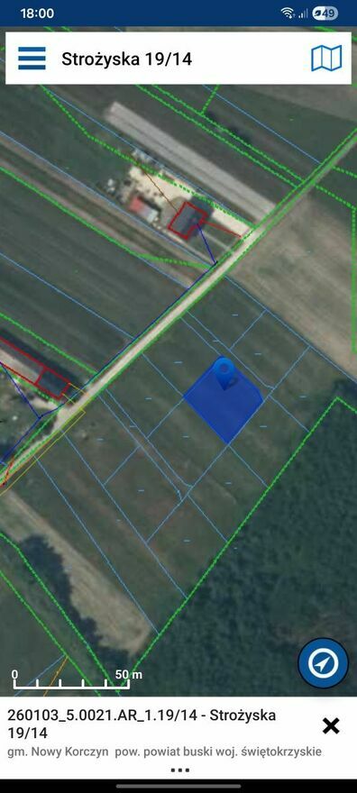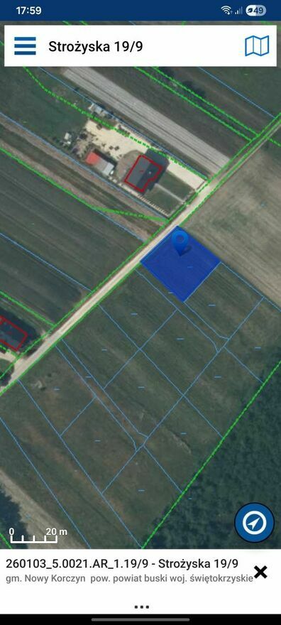 Pinezka do działek do samodzielnego zobaczenia w terenie.