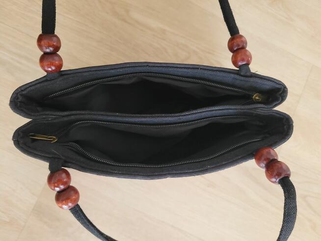 Torebka codzienna mała poręczna. Wykonana z jeansu i tkaniny żakard. Przód i tył usztywniony wkładem, natomiast dno i ...
