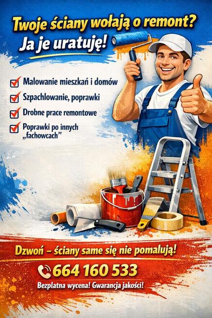 Witam, oferuje usługi remontowe -szpachlowanie -malowanie -tapetowanie -sufity podwieszane -ścianki ...