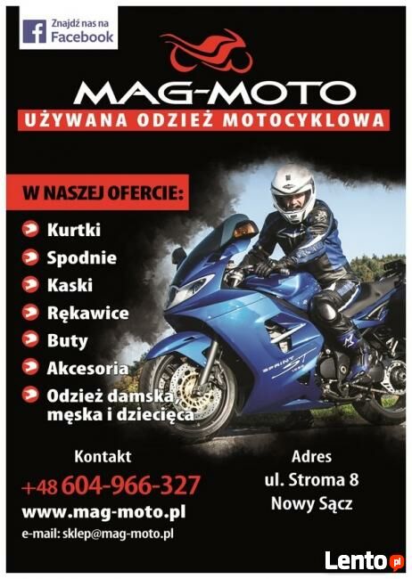 Zapraszamy do odwiedzenia strony jedynego w Polsce sklepu internetowego z używaną odzieżą motocyklową www.mag-moto.plOferujemy używane i nowe :