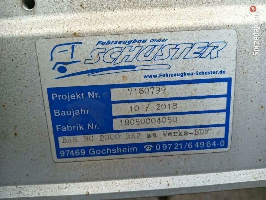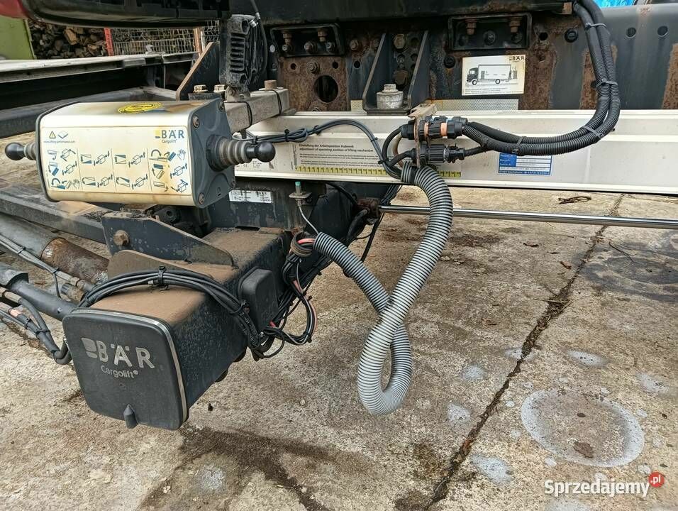 Winda załadowcza (tail lift) do samochodów dostawczych i ciężarowych - sprawna technicznie, gotowa do montażu. Dane techniczne: Producent: BAR Cargolift (Niemcy) Model: BC 2000 R42 Rok produkcji: 2018 (październik) Numer fabryczny: 18050004050 Udźwig: 2000 kg (2 tony) Typ: winda składana hydrauliczna Producent zabudowy: Fahrzeugbau Schuster (Niemcy) Numer projektu: 7180799 Wyposażenie: Sterowanie hydrauliczne Dwa piloty zdalnego sterowania (widoczne na zdjęciach) Prowadnice boczne (niebieskie osłony) Platforma składana Sygnalizacja LED (światła tylne) Instalacja elektryczna i hydrauliczna kompletna Oznakowania ostrzegawcze i instrukcje obsługi Stan techniczny: Winda sprawna, w dobrym stanie Hydraulika bez wycieków Platforma stabilna Wszystkie funkcje działają Lekkie ślady użytkowania (normalne dla sprzętu z 2018r) Gotowa do montażu na pojeździe Wysokość podnoszenia: regulowanaF.H.U.T. Ryszard Bieniek